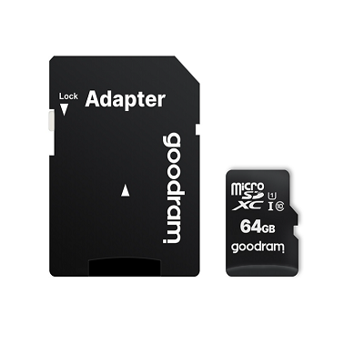 GoodRam memory card 64GB microSDXC class. 10 UHS-I 30 / 15 MB/s + adapter, Memóriakártya,Artisjus matricával, Dobozában, 27% áfával