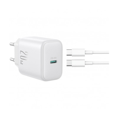 Joyroom JR-TCF20 hálózati töltőadapter, töltőfej 20W, 3A, 1 x USB-C + USB-C töltőkábel, adatkábel, fehér