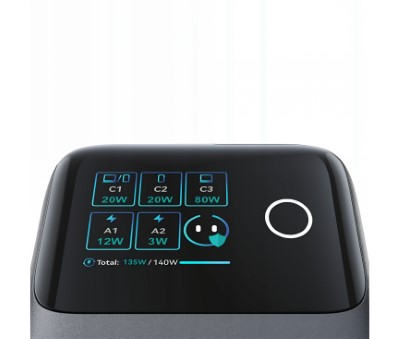 Joyroom Podix JR-TRD01 asztali töltőállomás, szürke (140W, 1 x USB-C, 2 x USB-A, USB-C kábellel)