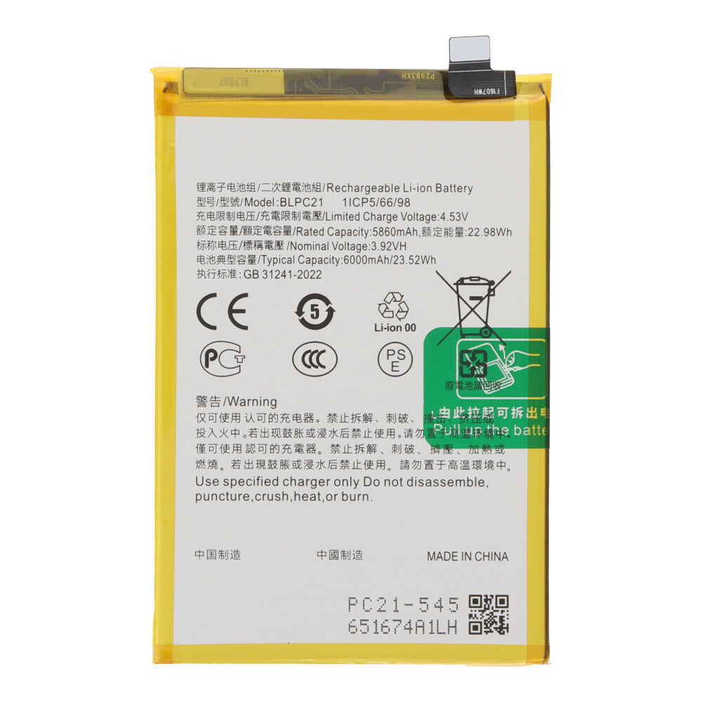 - Oppo BLPC21 akkumulátor (6000mAh, Li-ion, A5x 4G CPH2725) OEM